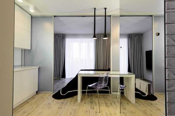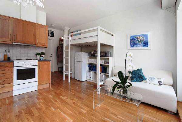 Если вы живете в небольшой однокомнатной квартире, стоит в любом случае из неё сделать студию, так как вам наверняка необходимо больше свободного места. Все двери стоит заменить на арки и воспользоваться любыми способами, которые могут помочь увеличить пространство.