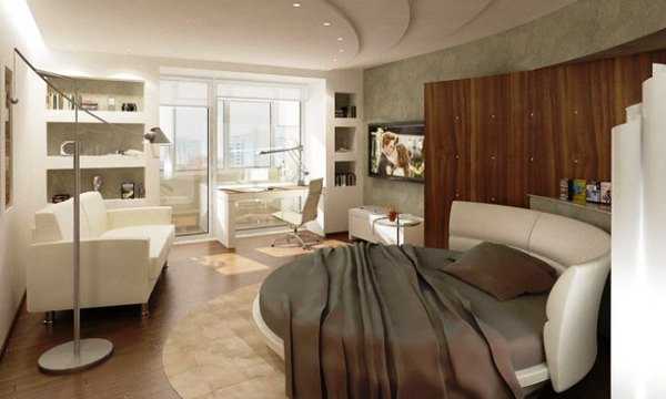 Когда вы уже определились с будущим дизайном однокомнатной квартиры-студии, ора продумать разделение помещения на зоны. В данном случае мы будем рассматривать такой вариант, который включает в себя кухню, ванную, туалет, спальню и кухню. Также в данный список входит и балкон, если он у вас есть.