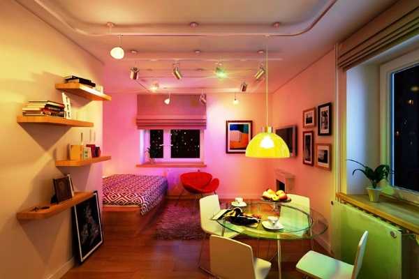 Кроме этого, правильно подобранные светильники, бра и лампы к интерьеру маленькой квартиры-студии подчеркнут каждую из зон.