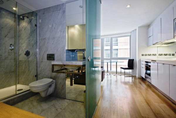 Что касается ванной комнаты и туалета, их лучше всего объединить в одно цельное помещение. К тому же, наверняка в небольшой квартире маленькая ванная, поэтому подумайте над установкой компактной душевой кабины.