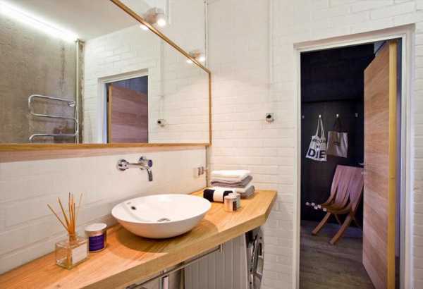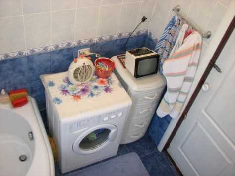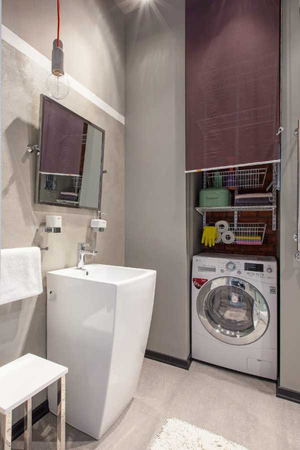 - Стиральная машина. От крупногабаритной техники придется отказаться или перенести ее в другую комнату. В дизайн ванной комнаты эконом-класса впишется только узкая стиральная машина, установленная под раковиной.
