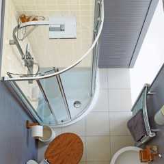 - Ванна или душевая кабина. Выбирать стоит из соображений практичности и привычек. Если члены семьи не могут представить себе вечера без получаса неги в ароматной пене, придется устанавливать ванну, жертвуя остальным. Если же вопрос непринципиален, имеет смысл обратить внимание на компактные душевые кабины. Альтернативой может стать укороченная, так называемая сидячая ванна. А если вместо занавески установить раздвижную систему из пластика, то получится практически многофункциональная душевая кабина.