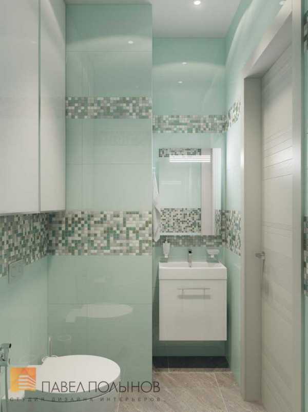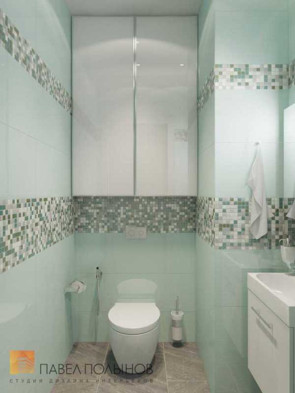 Нежный интерьер туалета 2.5 кв.м. в мятных тонах освежает помещение и создает ощущение комфорта. Удачное расположение мебели и сантехники максимально задействовало пространство: