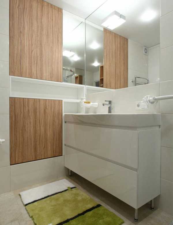 Если одолеть такие преграды не под силу, стоит внимательней присмотреться к помещению и определить, что из мебели здесь нужно оставить, а без чего можно обойтись. Также стоит спрятать все видные коммуникации, которые будут создавать ощущение захламленности комнаты, сужая ее габариты. Большую роль в зрительном расширении пространства играют зеркала – являясь необходимым предметом интерьера ванной, они способны сделать ее намного больше.