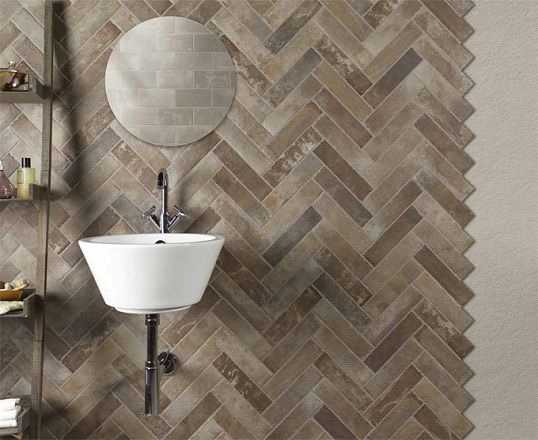 Привычную кирпичную кладку сменяет вертикальное расположении плитки или даже облицовка в виде елочки.