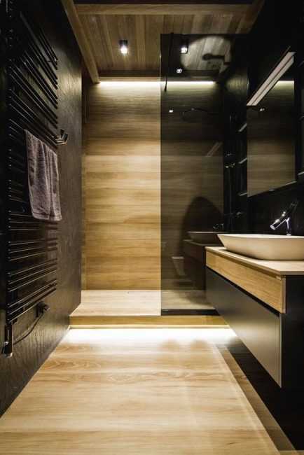 Все чаще дизайнеры отказываются от использования дешевых искусственных материалов. В оборудовании ванной комнаты теперь встречаются проекты с деревянной мебелью или приятными на ощупь столешницами из натуральной древесины.