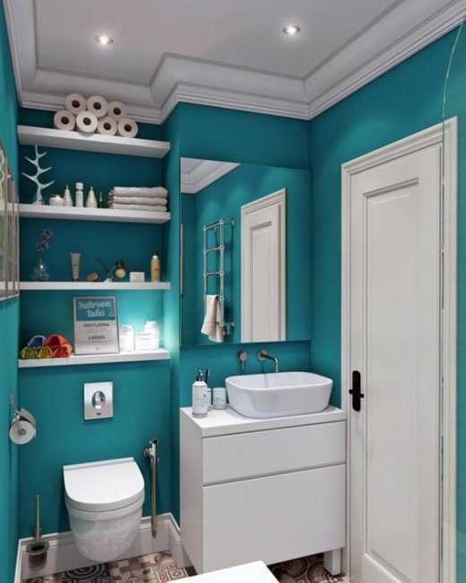 Над унитазом тоже можно расположить полочки