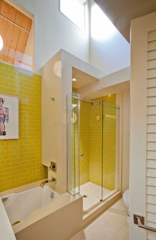 Если же душевая кабина не соответствует изначальному замыслу, облегчить интерьер можно отказавшись от привычных шторок для ванной в пользу стильного стеклянного экрана.