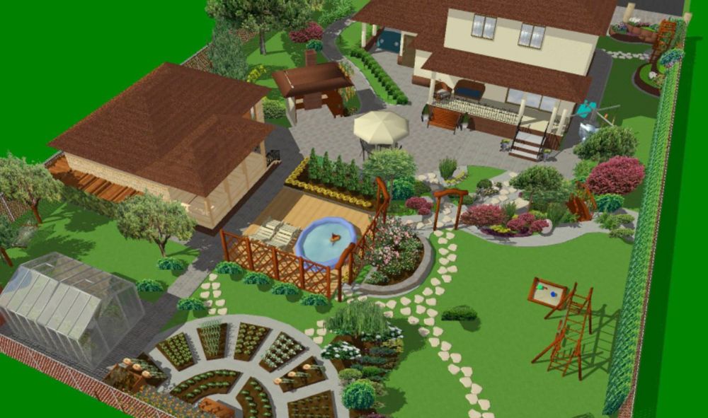 Планировку участка 5 соток проще всего осуществить с помощью одной из бесплатных или условно-бесплатных программ для разработки ландшафтного дизайна. Обучиться работе в таком приложении нетрудно, интерфейс логичный и русифицированный, а при создании дизайн-проекта учитывается все, вплоть до направления падения теней от деревьев.