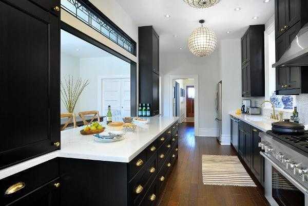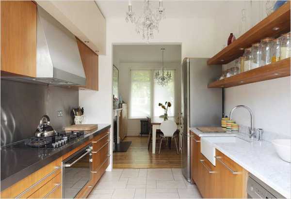 Если кухня узкая, то для нее оптимальным выбором будет линейное или параллельное размещение. В первом варианте гарнитур вместе с рабочими поверхностями ставится вдоль одной длинной стены, во втором — с одной стороны лучше поместить мойку и плиту, а с противоположной — холодильник и шкафчики с продуктами.