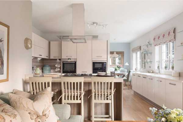 Кроме этого, кухонные гарнитуры различаются по планировке, которая зависит от геометрии и размеров комнаты. Есть угловые модели, П- и Г-образные, прямые, а также островные. Последние рекомендуется брать в помещение средних или больших размеров.