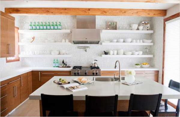 Ощущение беспорядка также возникает из-за большого количества красок и текстур, когда посуда или коробки с продуктами хранятся на открытых полках. Цветовой диссонанс между стенами, потолком и гарнитуром тоже нарушает гармонию пространства.