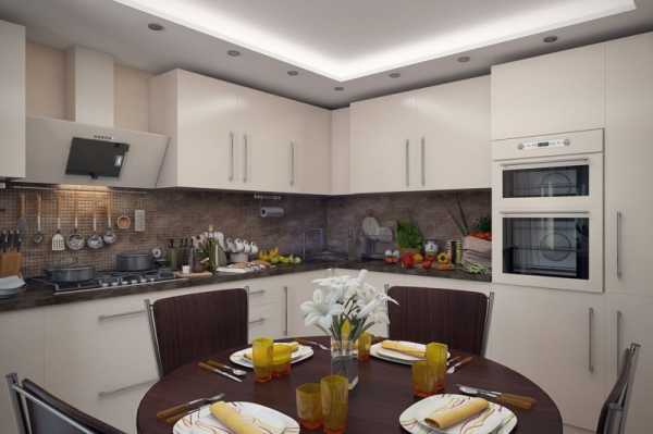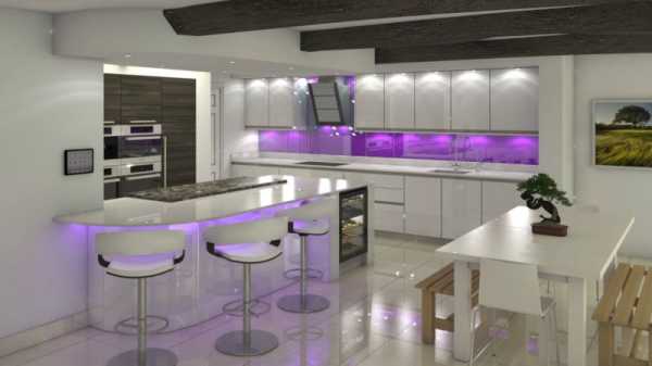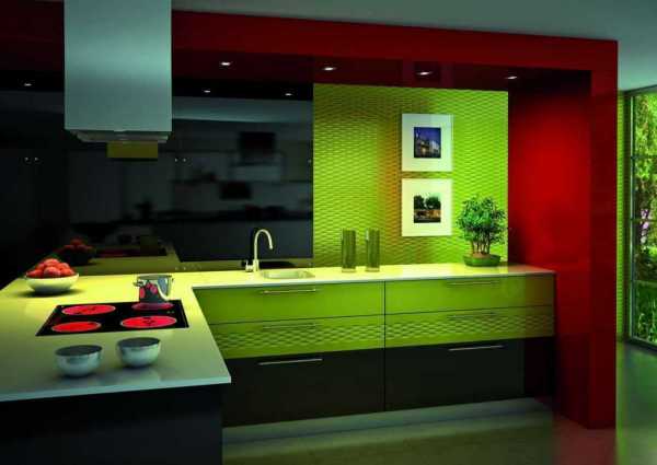 Следует предусмотреть и правильную подсветку на кухне. Ведь без качественного освещения рабочей зоны процесс готовки будет не удобен и затруднен.