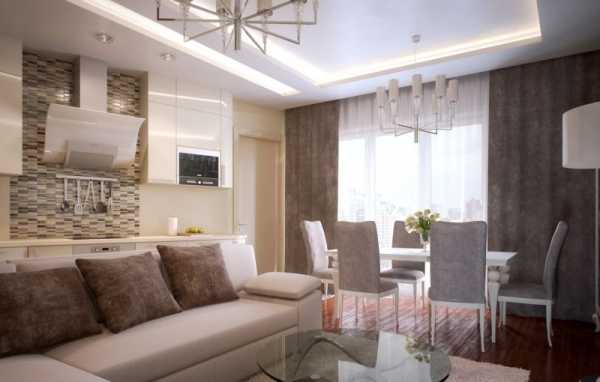 Во-первых, рекомендуется прибегнуть к изменению планировки, объединив зону кухни с гостиной. Отсутствие границ создаст ощущение свободы и простора даже в небольшой комнате, а визуально разделить жилье помогут разные виды перегородок.