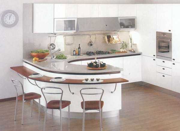 Кухня открытого типа, характерная для квартир-студий, позволяет использовать любую удобную систему планировки. Например, если зона готовки отделена от гостиной стойкой-столешницей с вмонтированной варочной поверхностью и раковиной — получится островной тип; если эта перегородка имеет форму полукруга — овальный.