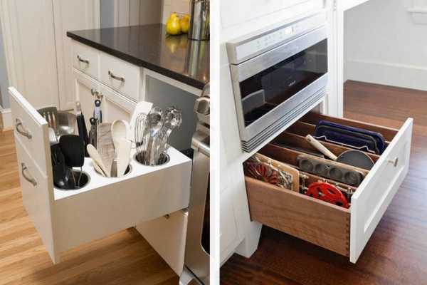 А специальные органайзеры для ящиков помогут аккуратно отделить ложки, ножи, вилки и другие предметы.