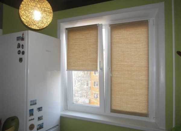 Также следует обратить внимание на размер и вид занавесок для кухни. Например, если кухня просторная и имеет классический дизайн, то на окна можно повесить тяжелые шторы с ламбрекенами и рюшами. Если же ситуация противоположная, то для окон подойдут не занавески на карнизах, а рулонный тип штор или жалюзи. Они удобны тем, что крепятся прямо на оконную раму, тем самым высвобождая пространство подоконника. К тому же, они никогда под потоком воздуха из окна не коснутся плиты, так, что их можно отнести к категории безопасных штор.
