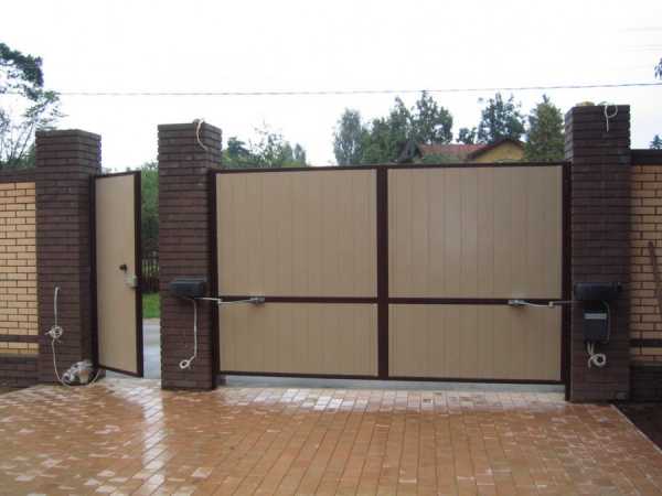 Для автоматизации металлических изделий нужно подвести стандартное сетевое напряжение переменного тока. На многих фото можно увидеть насколько легко работают и управляются подобные системы. Чтобы автоматика работала и не имела никаких препятствий, необходимо заранее позаботиться о несущих столбах. Желательно отдавать предпочтение бетонным конструкциям, в крайнем случае – кирпичным.