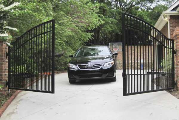 Распашные ворота, смотрите фото ниже, действуют, как дверь квартиры или холодильника. Вы пробовали открыть дверцу холодильника, если к ней прижат стол? Ведь это невозможно. Распашные ворота нуждаются в просторе, и чем они шире, тем больше нужно места. Если конструкция распахивается наружу, тогда они становятся преградой для автомобиля, въездной путь перекрывается. Внутрь, — значит, придется следить за тем, чтобы эта часть двора была свободной.