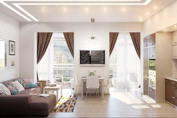 Дизайн гостиной совмещенной с кухней.
