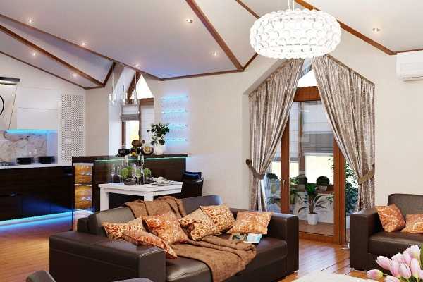 Дизайн зала объединенного с кухней (фото)