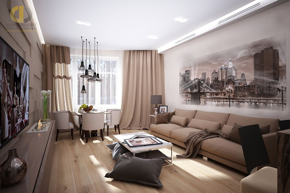 Бежевый цвет в дизайне 20-квадратной гостиной