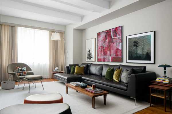 В «скандинавских» гостиных можно увидеть северный вариант обоев – фотообои с узорами вязания, а также все больше яркого уютного текстиля. Особенно актуальны подобные отделки для зимних месяцев. Эклектичный подход к минимализму проявляется в смешении лаконичных форм и светлых отделок с винтажем – удобной мебели 60-ых годов: тумбы и журнальные столики, мягкие уютные диваны под пледами с горой цветных подушек. При этом мебель должна оставаться линейной, обтекаемой – никаких острых углов и вычурности, никакого декора и украшательства. Оригинальности можно добавить, применив дизайнерские светильники или притягивающий взгляд арт-объект — скульптуру, вазу, картину. При смешении стилей крайне важна гармония цветосочетаний, и наибольшее количество цветов, как и ярких примет стиля – два или три.