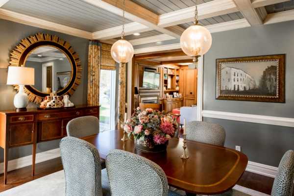 Потолок и стены залы предпочтительно сделать в светлых или пастельных тонах. Допускается использовать минимум декора для расстановки акцентов помещения.