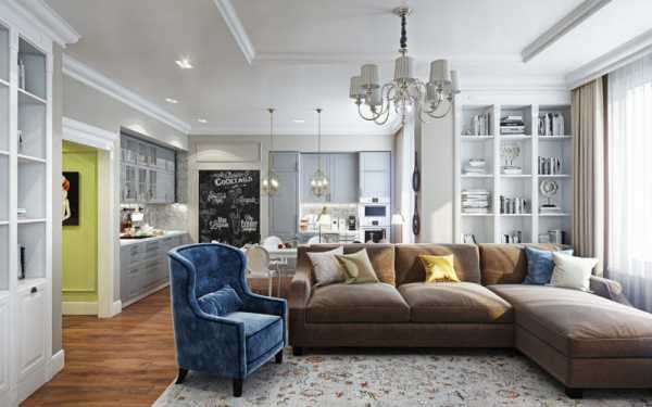 Гостиная в квартире сегодня это не только место, где собираются для приятного времяпрепровождения близкие и друзья, но еще и функциональное помещение, в котором довольно часто сочетаются несколько пространств-кухню, кабинет или же спальню.