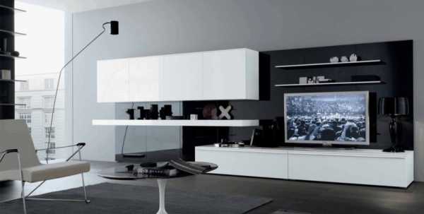 Корпусную мебель лучше выбрать лаконичную. Если площадь помещения позволяет можно установить мебельную стенку для залы, в маленьких комнатах – тумбы. Сейчас в тренде использование открытых полочек.