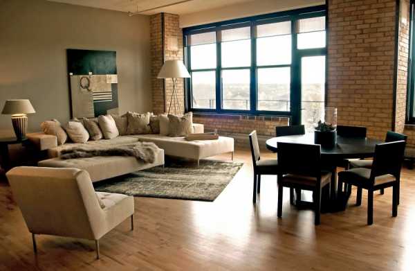 Выбрав данное стилистическое решение, необходимо убрать все межкомнатные перегородки, отделив только санузел. Зоны можно выделить за счет освещения и расстановки мебели.