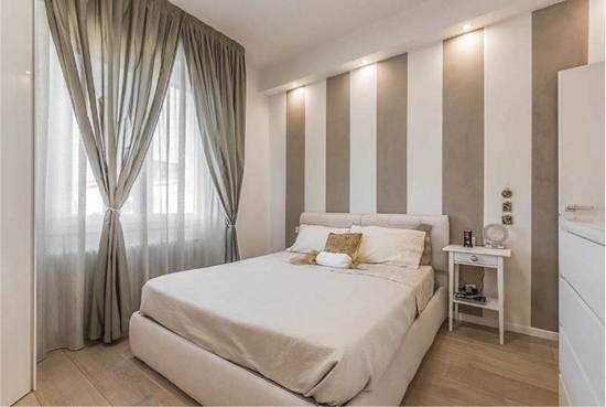 Кстати, их не обязательно делать горизонтальными или вертикальными. При желании их можно расположить хоть по косой – главное, чтобы они вписывались в окружающую обстановку дома. То же касается и подбора цветов. Самое простое решение – сделать полосы двухтонными, но если оно вам кажется скучным, вы всегда можете окрасить их во все цвета радуги либо скомбинировать между собой 3-4-5, а то и более любых оттенков краски.