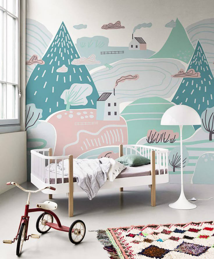 Детские обои, на которых изображены панорамы гор — один из самых популярных трендов последних лет.