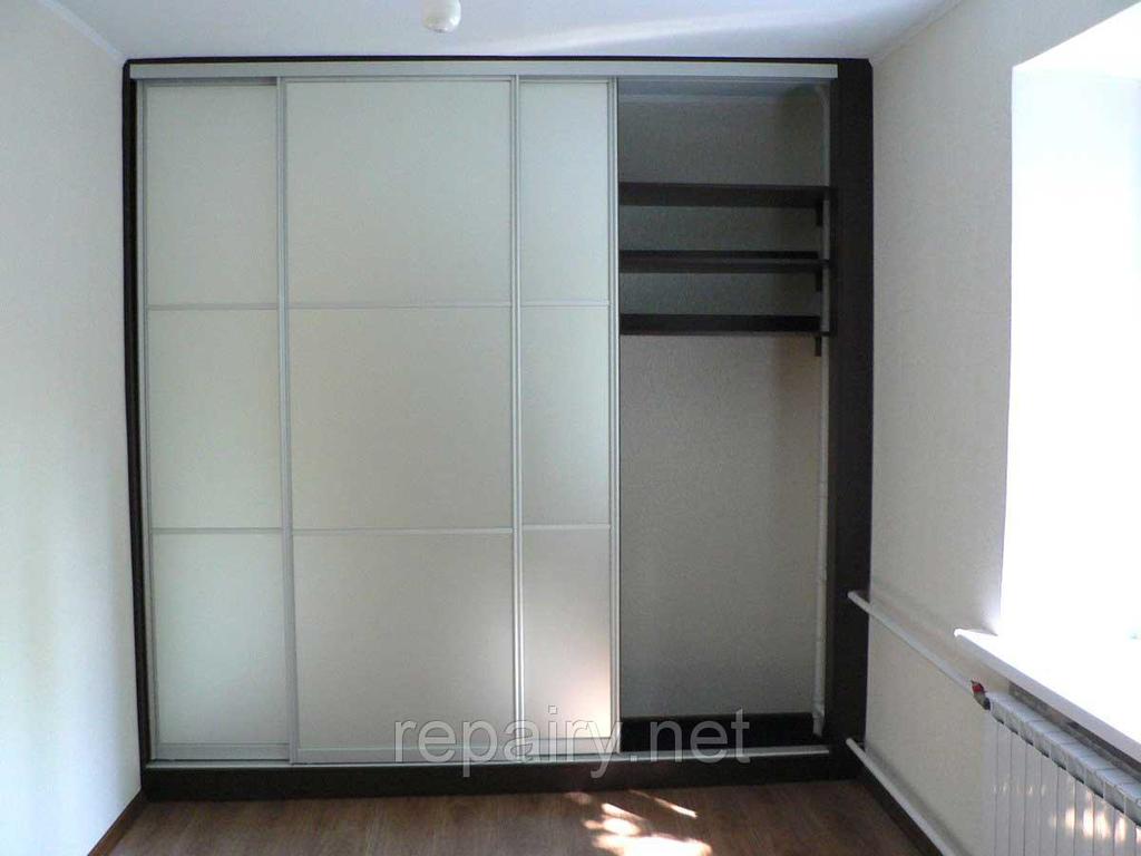 Устанавливая стеклянные раздвижные двери для гардеробной необходимо уложить направляющий профиль и установить крепления для поддержания стекла. Профили и крепления могут монтироваться на полу или потолке. Этих элементов достаточно для длительной и безопасной эксплуатации. Для удобства могут врезаться ручки нужной формы.