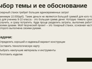 Все дети с раннего детства мечтают кем-нибудь стать. Одни желают быть лётчиками, другие — космонавтами, третьи — телеведущими. Однако, помимо подобных грандиозных планов на будущее, есть ещё и менее масштабные устремления, например, оказание помощи родителям по дому, участие в школьных мероприятиях, выполнение творческих заданий. К последним, как правило, относится рукоделие: девочки обучаются шитью и вязанию, а мальчишки начинают работать с различными инструментами и познавать основы ремонта и изготовления новых изделий. Когда первые шаги в этом деле усваиваются, мальчики желают приступить к более сложным заданиям, поэтому, оказываясь в школьном кабинете технологии, они сразу же загораются желанием встать у какого-нибудь станка и с его помощью что-либо изготовить. Как правило, учитель по технологии обучает работе со сверлильным станком, затем с токарными. Это уже более серьёзные устройства, которые заслуживают отдельного внимания.