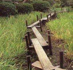 Это позволит значительно продлить эксплуатационный срок деревянных тропинок.