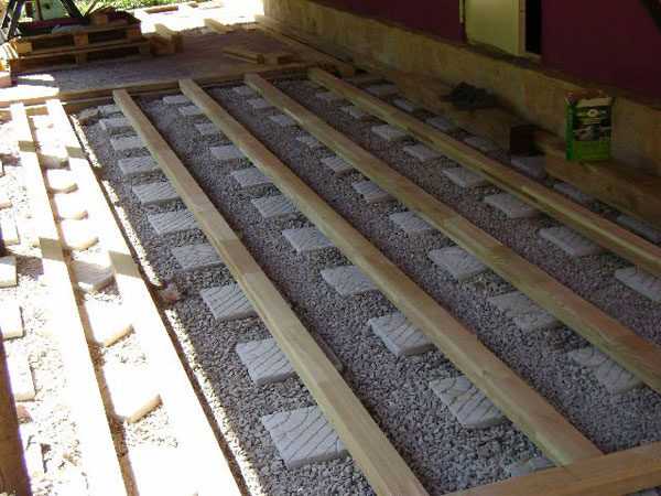 ΠΠΎΠΆΠ½ΠΎ ΡΠ΄Π΅Π»Π°ΡΡ ΠΏΠΎ-Π΄ΡΡΠ³ΠΎΠΌΡ: Π²ΠΌΠ΅ΡΡΠΎ ΠΏΡΠΎΠΊΠ»Π°Π΄ΠΊΠΈ ΡΡΠ΅Π΄Π½Π΅Π³ΠΎ ΡΡΠ΄Π°, ΡΠΊΡΠ΅ΠΏΠΈΡΡ ΠΌΠ΅ΠΆΠ΄Ρ ΡΠΎΠ±ΠΎΠΉ ΠΊΡΠ°ΠΉΠ½ΠΈΠ΅, ΠΏΠ°ΡΠ°Π»Π»Π΅Π»ΡΠ½ΠΎ ΡΠ°ΡΠΏΠΎΠ»ΠΎΠΆΠ΅Π½Π½ΡΠ΅ Π»Π°Π³ΠΈ, ΠΏΠΎΠΏΠ΅ΡΠ΅ΡΠ½ΡΠΌΠΈ Π±ΡΡΡΠΎΡΠΊΠ°ΠΌΠΈ, Π²ΡΠ΅Π·Π°Ρ ΠΈΡ Π² ΠΏΡΠ΅Π΄Π²Π°ΡΠΈΡΠ΅Π»ΡΠ½ΠΎ ΡΠ΄Π΅Π»Π°Π½Π½ΡΠ΅ Π·Π°ΠΏΠΈΠ»Ρ ΡΠ΅ΡΠ΅Π· ΠΊΠ°ΠΆΠ΄ΡΠ΅ 50 ΡΠΌ. ΠΠΎΡΠ»Π΅ ΡΡΠΎΠ³ΠΎ ΠΏΡΠΈΠ±ΠΈΡΡ Π³Π²ΠΎΠ·Π΄ΡΠΌΠΈ Π΄ΠΎΡΠΊΠΈ. ΠΠ±ΡΠ·Π°ΡΠ΅Π»ΡΠ½ΠΎ ΠΎΡΡΠ°Π²Π»ΡΠΉΡΠ΅ ΠΌΠ΅ΠΆΠ΄Ρ Π±ΡΡΡΠΊΠ°ΠΌΠΈ 5 ΠΌΠΌ, ΡΡΠΎΠ±Ρ ΠΏΠΎ Π½ΠΈΠΌ ΠΌΠΎΠ³Π»Π° ΡΡΠ΅ΠΊΠ°ΡΡ Π²ΠΎΠ΄Π°, ΠΈ ΡΡΠΎΠΏΠΈΠ½ΠΊΠ° Π½Π΅ Π΄Π΅ΡΠΎΡΠΌΠΈΡΠΎΠ²Π°Π»Π°ΡΡ ΠΏΡΠΈ ΠΏΠ΅ΡΠ΅ΠΏΠ°Π΄Π°Ρ ΡΠ»ΠΈΡΠ½ΠΎΠΉ ΡΠ΅ΠΌΠΏΠ΅ΡΠ°ΡΡΡΡ.