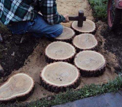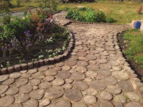 ΠΡΠΈΠ³ΠΈΠ½Π°Π»ΡΠ½ΡΡ ΠΈ ΠΎΡΠ΅Π½Ρ Π½Π΅ΠΎΠ±ΡΡΠ½ΡΡ ΡΠ°Π΄ΠΎΠ²ΡΡ Π΄ΠΎΡΠΎΠΆΠΊΡ ΠΌΠΎΠΆΠ½ΠΎ ΡΠ΄Π΅Π»Π°ΡΡ ΠΈΠ· ΡΠΏΠΈΠ»ΠΎΠ² Π΄Π΅ΡΠ΅Π²Π°. ΠΡΠ΅Π²Π½ΡΡΠΊΠΈ ΡΠΊΠ»Π°Π΄ΡΠ²Π°ΡΡ Π² ΠΏΡΠΎΠΈΠ·Π²ΠΎΠ»ΡΠ½ΠΎΠΌ ΠΏΠΎΡΡΠ΄ΠΊΠ΅, ΡΠ΅ΡΠ΅Π΄ΡΡ ΠΏΠ΅Π½ΡΠΊΠΈ ΡΠ°Π·Π½ΠΎΠ³ΠΎ Π΄ΠΈΠ°ΠΌΠ΅ΡΡΠ°. Π Ρ ΠΎΠ΄ ΠΏΠΎΠΉΠ΄ΡΡ ΡΠ°ΠΊΠΆΠ΅ ΠΈ ΡΠΎΠ»ΡΡΡΠ΅ Π²Π΅ΡΠΊΠΈ, ΠΊΠΎΡΠΎΡΡΠΌΠΈ ΠΌΠΎΠΆΠ½ΠΎ Π·Π°ΠΏΠΎΠ»Π½ΠΈΡΡ ΠΏΡΡΡΠΎΡΡ ΠΌΠ΅ΠΆΠ΄Ρ ΠΊΡΡΠΏΠ½ΡΠΌΠΈ ΡΠ°ΡΡΡΠΌΠΈ.