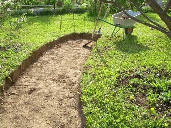 ΠΡΠ΅ΠΆΠ΄Π΅ ΡΠ΅ΠΌ ΡΠ΄Π΅Π»Π°ΡΡ ΡΠ²ΠΎΠΈΠΌΠΈ ΡΡΠΊΠ°ΠΌΠΈ Π΄Π΅ΡΠ΅Π²ΡΠ½Π½ΡΠ΅ Π΄ΠΎΡΠΎΠΆΠΊΠΈ Π½Π° Π΄Π°ΡΠ΅, Π½ΡΠΆΠ½ΠΎ ΠΏΠΎΠ΄Π³ΠΎΡΠΎΠ²ΠΈΡΡ ΠΏΠΎΠ΄ Π½ΠΈΡ ΠΎΡΠ½ΠΎΠ²Π°Π½ΠΈΠ΅. ΠΠ»Ρ ΡΡΠΎΠ³ΠΎ ΠΌΠ΅ΠΆΠ΄Ρ Π½Π°ΡΡΠ½ΡΡΡΠΌΠΈ ΠΊΠΎΠ»ΡΡΠΊΠ°ΠΌΠΈ Π²ΡΠΊΠΎΠΏΠ°ΠΉΡΠ΅ ΡΡΠ°Π½ΡΠ΅Ρ Π³Π»ΡΠ±ΠΈΠ½ΠΎΠΉ ΠΏΡΠΈΠΌΠ΅ΡΠ½ΠΎ 20 ΡΠΌ. Π§ΡΠΎΠ±Ρ Π·Π°ΡΠΈΡΠΈΡΡ Π±ΡΠ΄ΡΡΡΡ ΡΡΠΎΠΏΠΈΠ½ΠΊΡ ΠΎΡ ΠΏΡΠΎΡΠ°ΡΡΠ°Π½ΠΈΡ ΡΠΎΡΠ½ΡΠΊΠΎΠ², Π½Π°ΡΡΠ΅Π»ΠΈΡΠ΅ Π½Π° Π΄Π½ΠΎ ΡΠΌΡ Π³Π΅ΠΎΡΠ΅ΠΊΡΡΠΈΠ»Ρ, Π° Π·Π°ΡΠ΅ΠΌ Π½Π° Π½Π΅Π³ΠΎ Π½Π°ΡΡΠΏΡΡΠ΅ ΡΠ΅Π±Π΅Π½Ρ ΠΈΠ»ΠΈ Π³ΡΠ°Π²ΠΈΠΉ ΡΠ»ΠΎΠ΅ΠΌ 10 ΡΠΌ. ΠΡΠ»ΠΈ Π²Ρ Π²ΡΠ±ΡΠ°Π»ΠΈ ΡΠΏΡΠΎΡΠ΅Π½Π½ΡΠΉ Π²Π°ΡΠΈΠ°Π½Ρ ΡΡΠΎΠΏΠΈΠ½ΠΊΠΈ ΠΈ ΡΠ΅ΡΠΈΠ»ΠΈ ΡΠ΄Π΅Π»Π°ΡΡ Π΅Π΅ Π½Π° ΡΡΠΎΠ²Π½Π΅ Π·Π΅ΠΌΠ»ΠΈ, ΡΠΎ ΠΏΡΠΎΡΡΠΎ ΠΏΠΎΠ»ΠΎΠΆΠΈΡΠ΅ Π΄ΠΎΡΠΊΠΈ ΡΠ²Π΅ΡΡ Ρ ΠΈ ΡΡΠΎΠΏΠΈΡΠ΅ ΠΈΡ Π² ΡΠ΅Π±Π΅Π½ΠΊΡ.