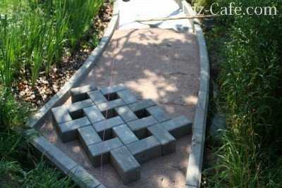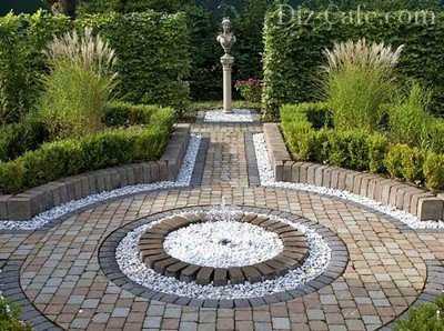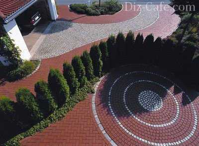 Каменная брусчаткаНеважно, какой вид покрытия будет выбран для создания садовой аллеи. Главное, подойти к делу с фантазией и хорошим настроением. Из обычной брусчатки можно выложить целую картину, затейливый орнамент или мудрое изречение. Для дачных участков чаще всего используется колотая или пилено-колотая брусчатка небольших размеров (7х7х5 см, 5х5х3 см), но можно использовать и крупный клинкерный кирпич (20х10х4,5 см).