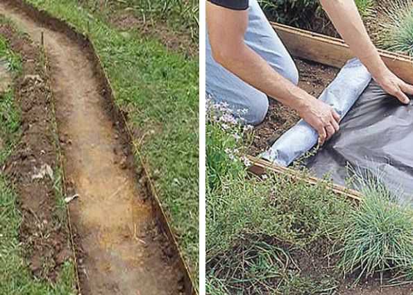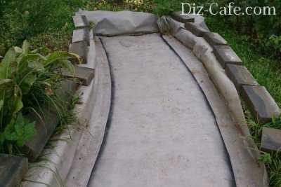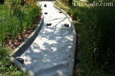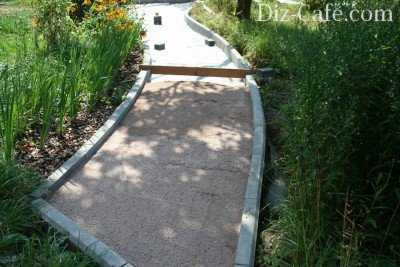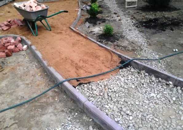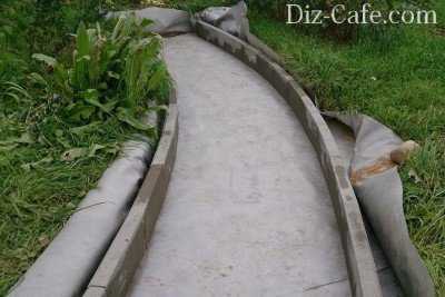 Перед засыпкой строительной смеси необходимо установить бордюр, который предаст форму нашей дорожке и строго очертит ее границы.