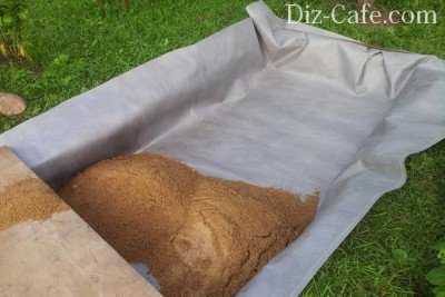 Песок (крупный, карьерный) был засыпан слоем 10 см.