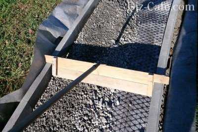 К выравниванию отсыпки нужно подойти очень внимательно, используя выравнивающую рейку с пазами под планируемую высоту слоя.