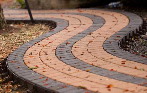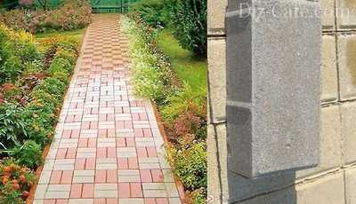 - Законченный и опрятный вид дорожке из брусчатки может придать бордюр, который обычно приобретается уже готовым;