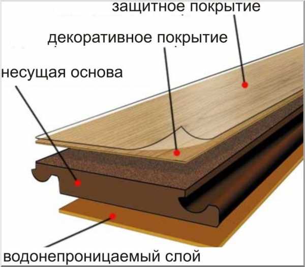 Все напольные ламинированные покрытия имеют одинаковое строениеПоследовательность слоев: