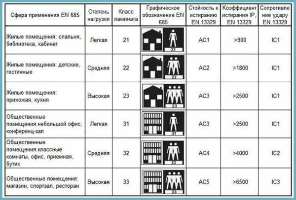 - износостойкость. Долговечность настила обусловлена классом прочности. Следует выбирать ламинат, соответствующий проходимости и нагрузке. Не целесообразно переплачивать за высокий класс для жилой комнаты, а для офиса лучше выбирать более износостойкое покрытие;