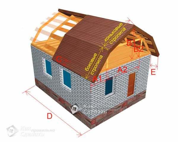 Расчетная длина стропил боковых скатов, располагаемых от нижней части ската до верха мансардного этажа.