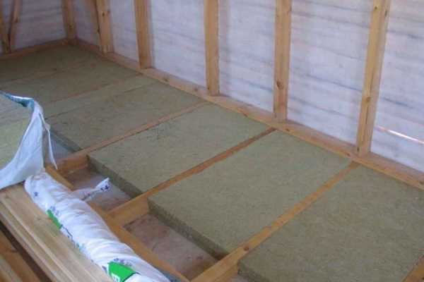 Распространенный вариант утеплителя для таких полов — слой минеральной базальтовой ваты либо ее заменителя толщиной 10-15 см. Не стоит забывать и про гидроизоляцию.