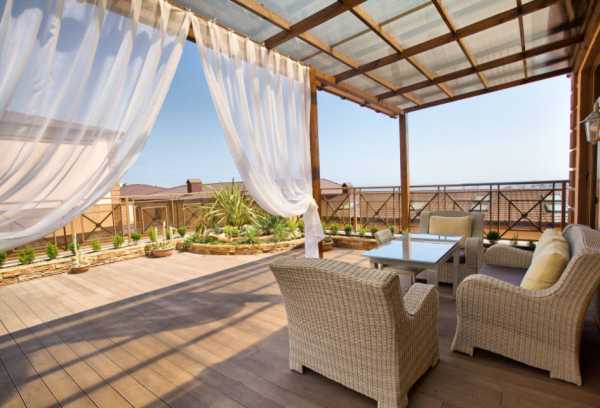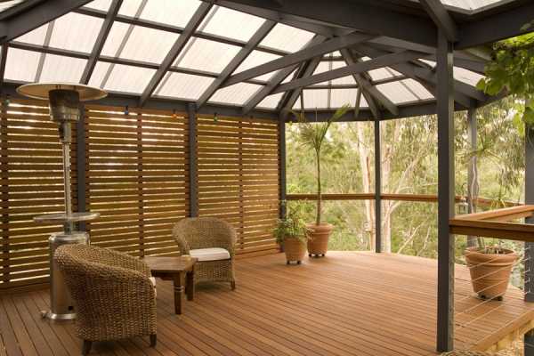 - Это незаменимый материал при обустройстве террас, как открытых, закрытых, приподнятых над землей, так и отдельно стоящих. Становится возможным размещение террасы даже на крыше.