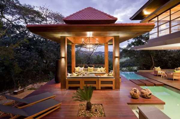 Тем, кто любит что-либо экзотическое, подойдёт вариация из тропических деревьев. По-настоящему эксклюзивным будет выглядеть настил, изготовленный из древесных пород, растущих в африканских, азиатских и южно-американских лесах. Удивительная структура волокон и долгое, до 80 лет, время эксплуатации придают такому декингу уникальности.